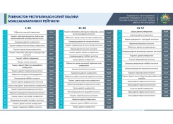 В соответствии с постановлением Президента Республики Узбекистан от 20 апреля 2017 г. №ПП-2909 «О мерах по дальнейшему развитию системы высшего образования» в целях создания среды здоровой конкуренции среди высших образовательных учреждений, повышения качества образования и всестороннему способствованию вхождения отечественных вузов в международные рейтинги Государственной инспекцией по надзору за качеством образования в последние три года составляется Национальный рейтинг вузов.