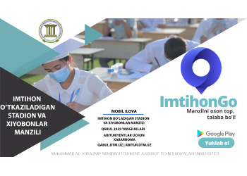 Недавно студентами Ташкентского университета информационных технологий имени Мухаммада ал-Хоразмий было разработано специальное мобильное приложение “ImtihonGo”, показывающее геолокации проведения тестовых испытаний для абитуриентов.
