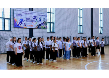 Фотографии ярких моментов из процесса спортивного конкурса "Тумарис издошлари" в Ташкентском университете информационных технологий имени Мухаммада ал-Хоразмий, который отражает активность студенток, командный дух и стремление к победе.