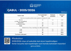 Для приема на бакалавриат на 2025/2026 учебный год были утверждены количество тестовых заданий по предметам и критерии их оценки для вступительных экзаменов в вузы Республики Узбекистан, согласно приказу Министерства высшего образования, науки и инноваций (критерии остались такими же, как в прошлом году).