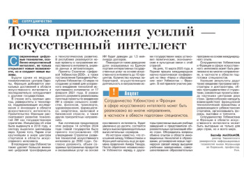 Сегодня, 14 марта, в номере 52 (8896) газеты Народное слово была опубликована статья ректора Ташкентского университета информационных технологий имени Мухаммада ал-Хоразмий Б. Махкамова под названием "Точка приложения усилий - искусственный интеллект," посвященная договоренностям и достигнутым результатам в рамках официального визита нашего уважаемого Президента Шавката Мирзиёева во Францию.