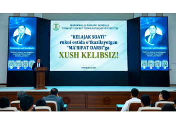 В тату был организован" урок просвещения “под рубрикой” час будущего". Проректор по учебной работе Дж.Султанов выступил с докладом.